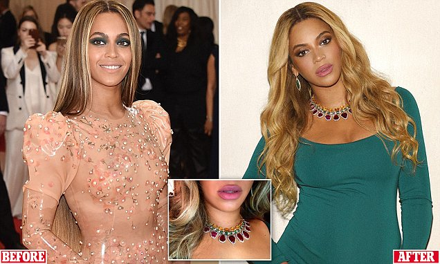The star announced last month that she is expecting twins with husband Jay Z Fans have commented that her lips look 'puffy' in a recent pregnancy shoot Some even speculated that the star has enhanced her pout with lip fillers But Dr Nestor Demosthenous believes they are the result of fluid retention She delighted fans last month with the news that she is expecting twins with her husband Jay-Z.