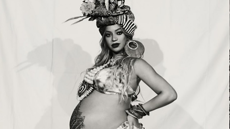 Beyonce is embracing her pregnancy! The 35-year-old singer, who's pregnant with twins, celebrated her baby shower over the weekend with a star-studded "Carter push-party," and shared a few photos on Instagram on Sunday. In the artsy photos, Beyonce rocks a headdress, a bra top and a printed skirt, sporting henna on her bare baby bump.