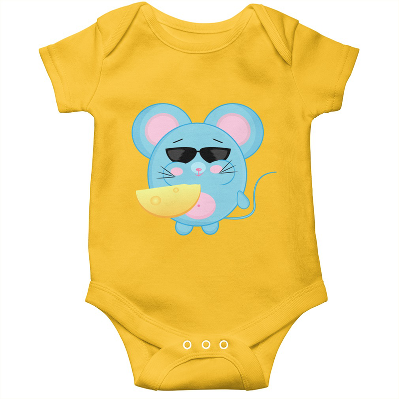Funny baby onesie mouse eat cheese, newborn baby suit.